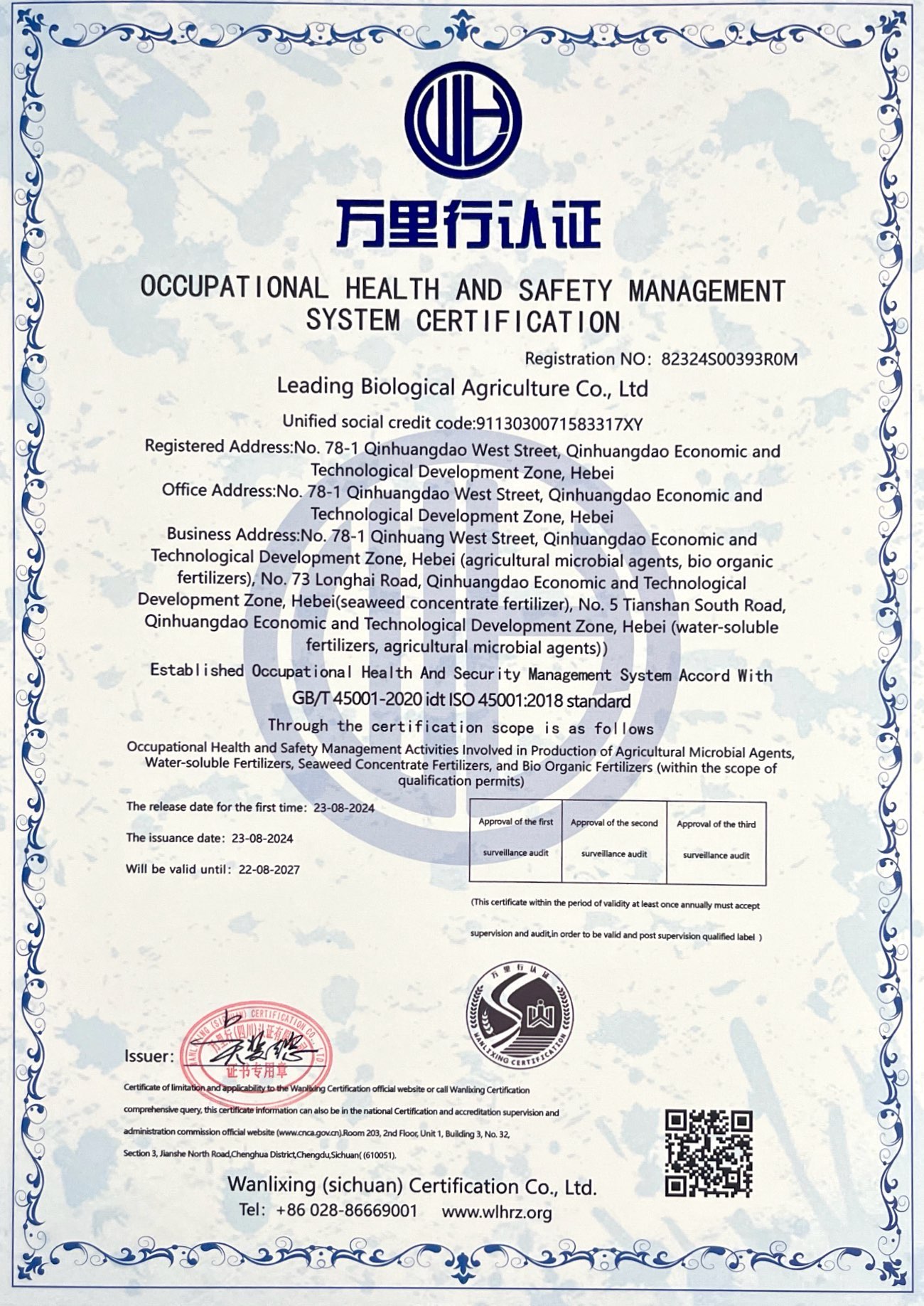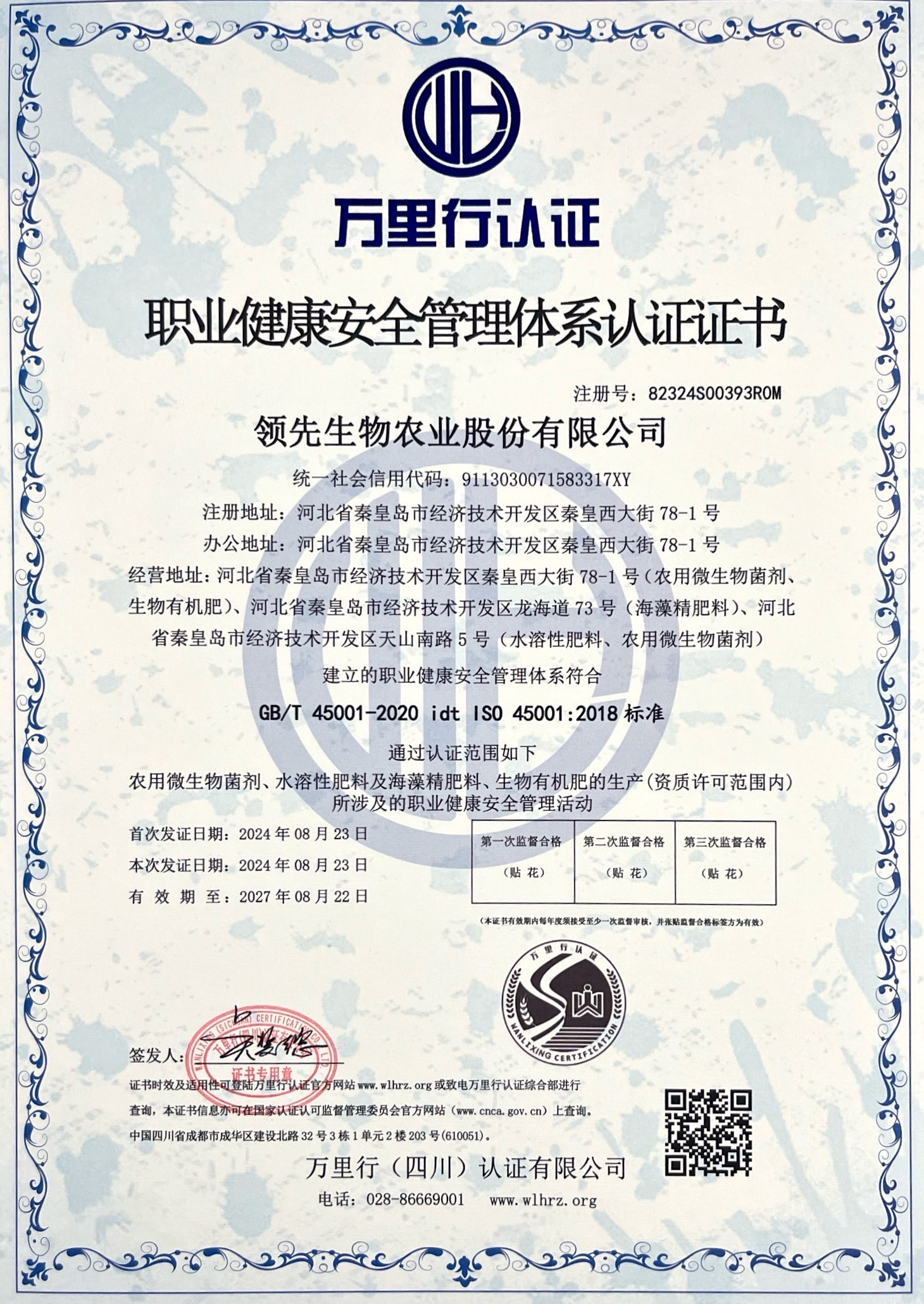 職業(yè)健康安全管理體系認(rèn)證證書(shū)